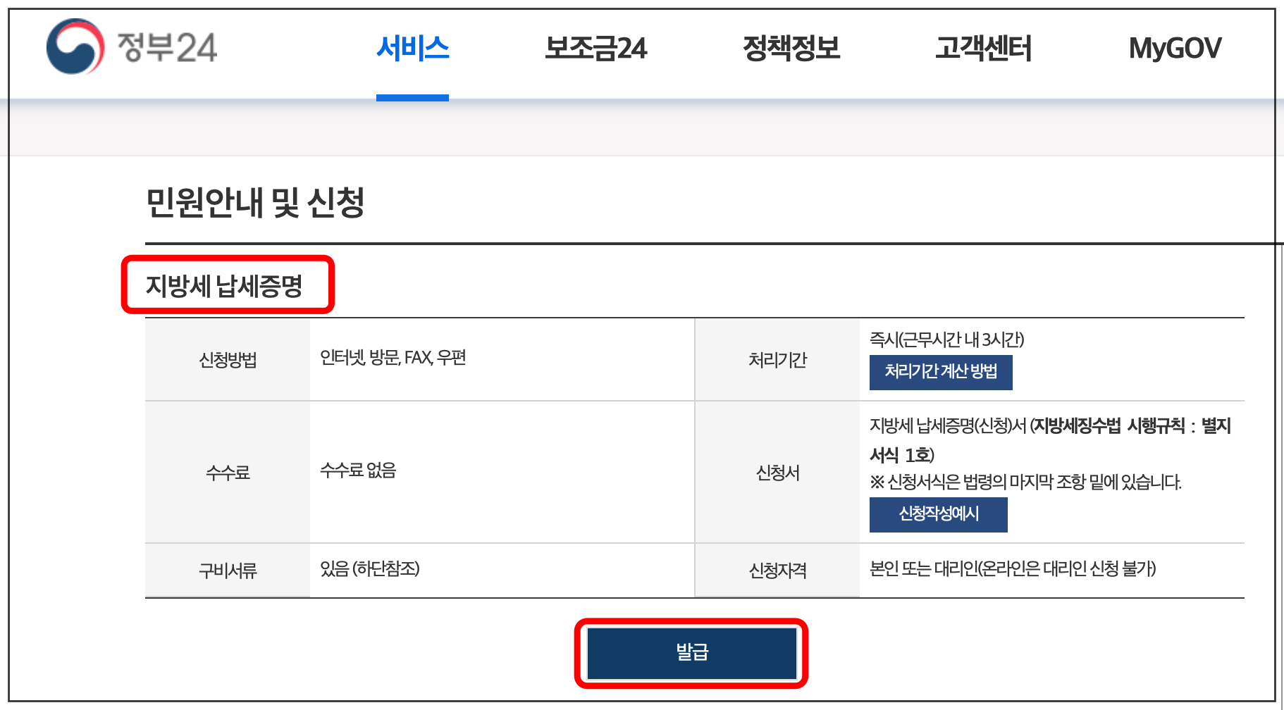 지방세 납세증명 발급 방법