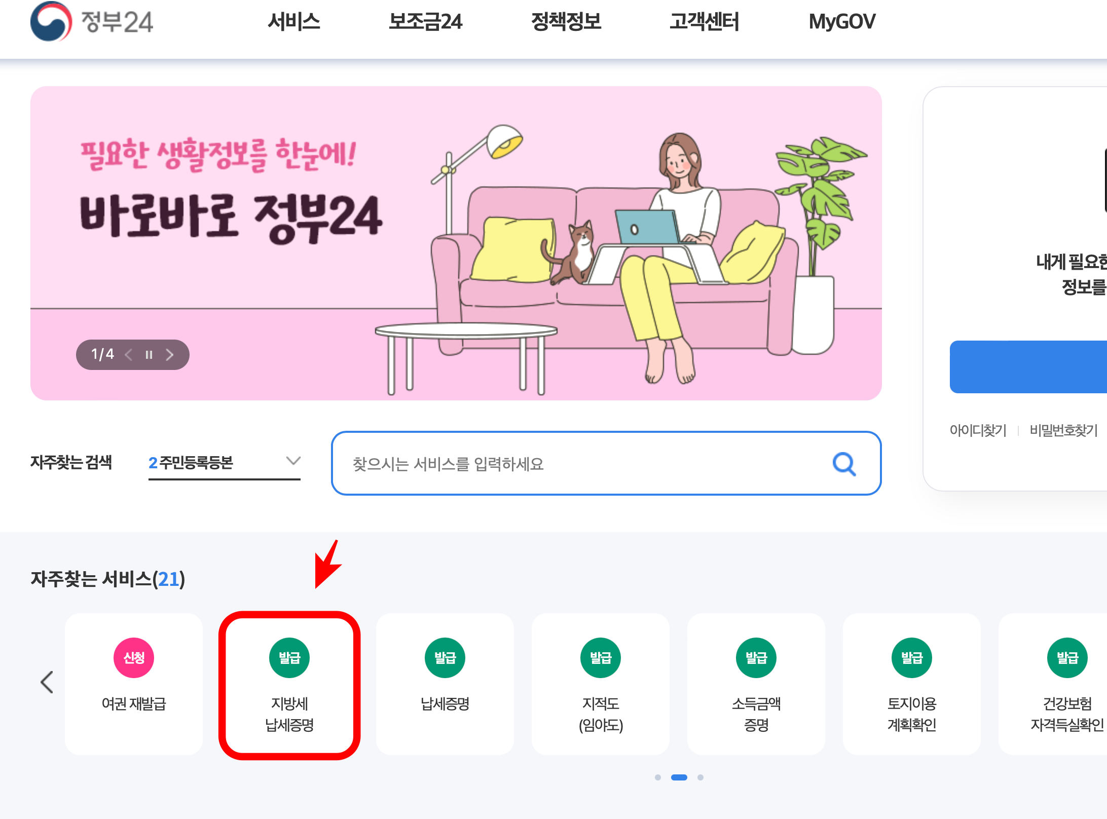 Step 1. 정부24 홈페이지에 접속 후, 로그인을 진행해주세요.