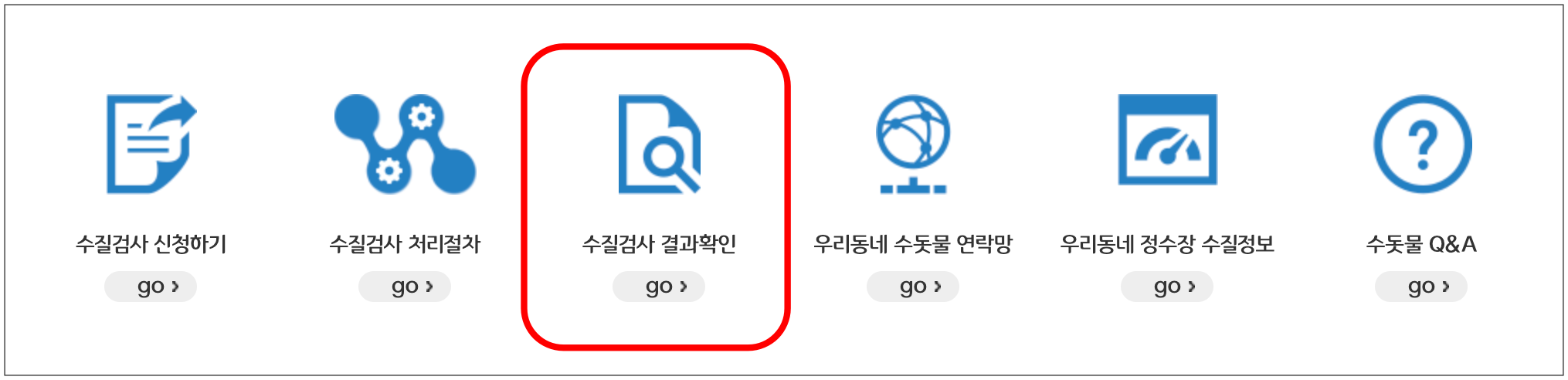 수질검사 결과는 홈페이지에서 확인 가능합니다. 검사일로부터 20일 이내 처리결과를 조회해 볼 수 있습니다.