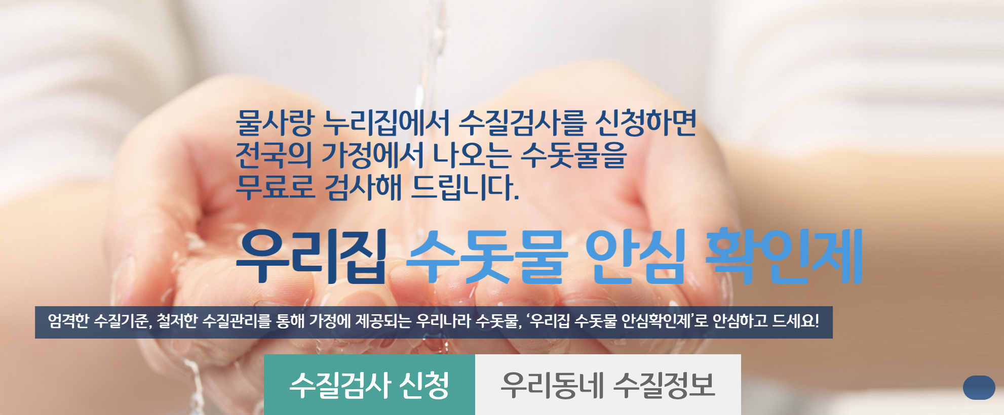 우리집 수돗물 안심하고 사용할 수 있는지 궁금하시다면 직접 검사받아보시기 바랍니다.