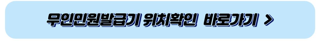 무인발급기를 통하여도 발급 가능합니다. 아래 무인민원발급기 위치를 확인하시고 발급받으시기 바랍니다.
