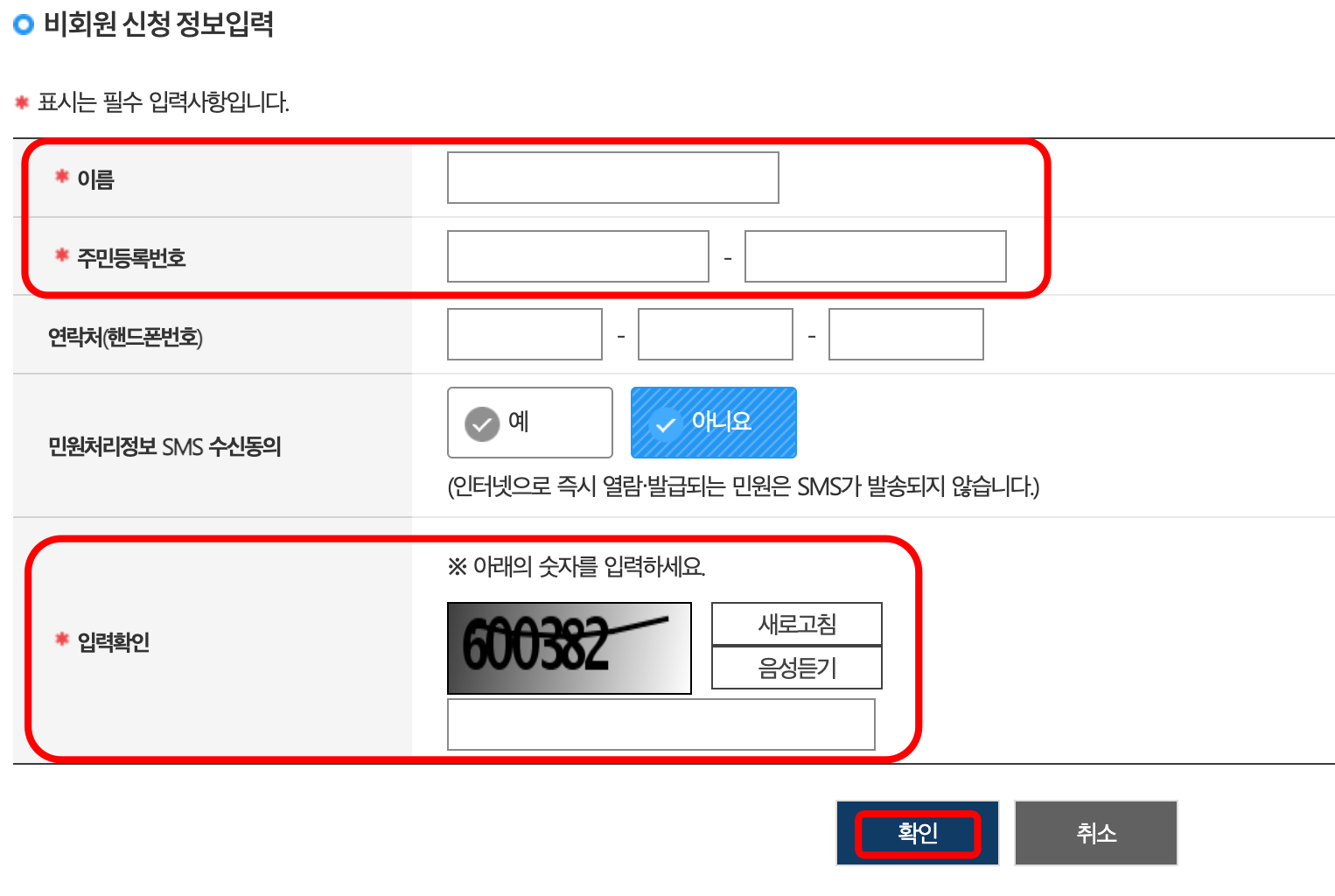 4. 이 서비스는 로그인이 필요합니다. [비회원 신청하기]를 누른 후, 이름/주민등록번호를 입력하고 확인을 누르면 됩니다. 만약 정부24에 회원가입이 되있다면 [회원 신청하기]를 누르고 진행하시면 됩니다.