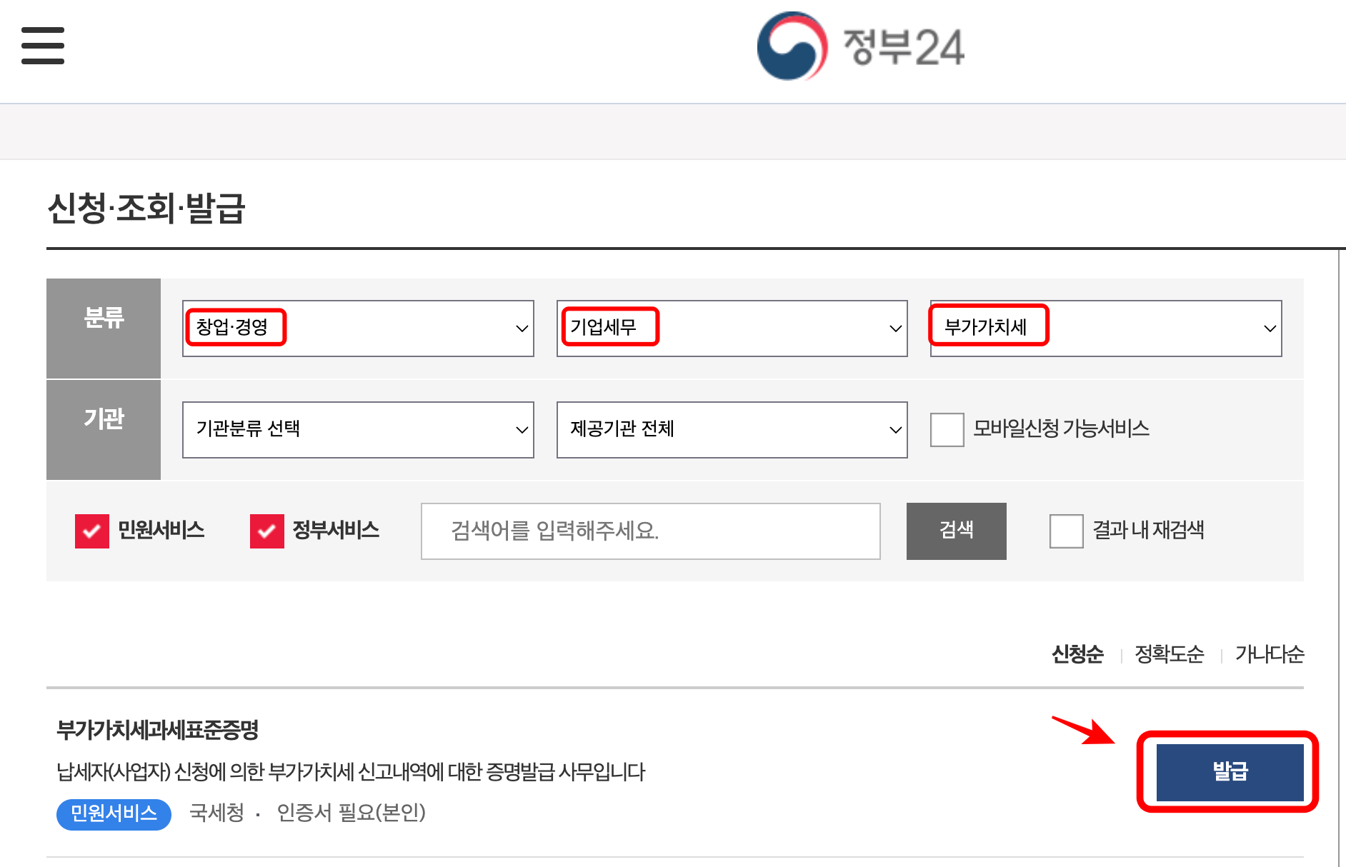정부24 홈페이지를 통하여 간편하게 부가가치세 과세표준증명원 발급이 가능합니다.