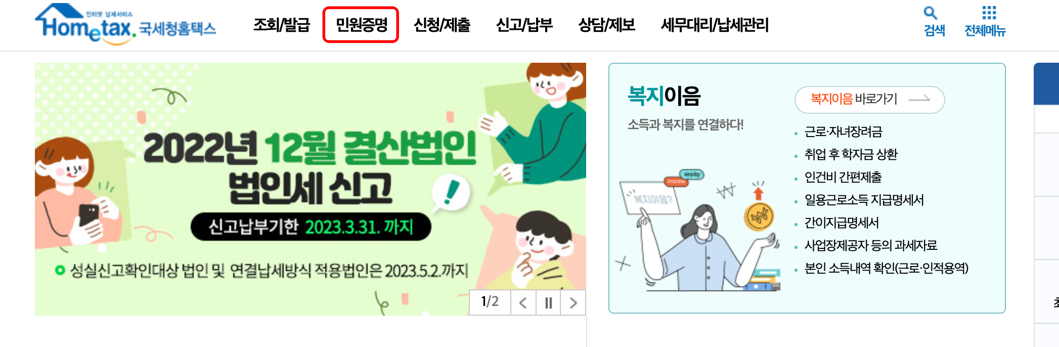 2. 홈택스 홈페이지