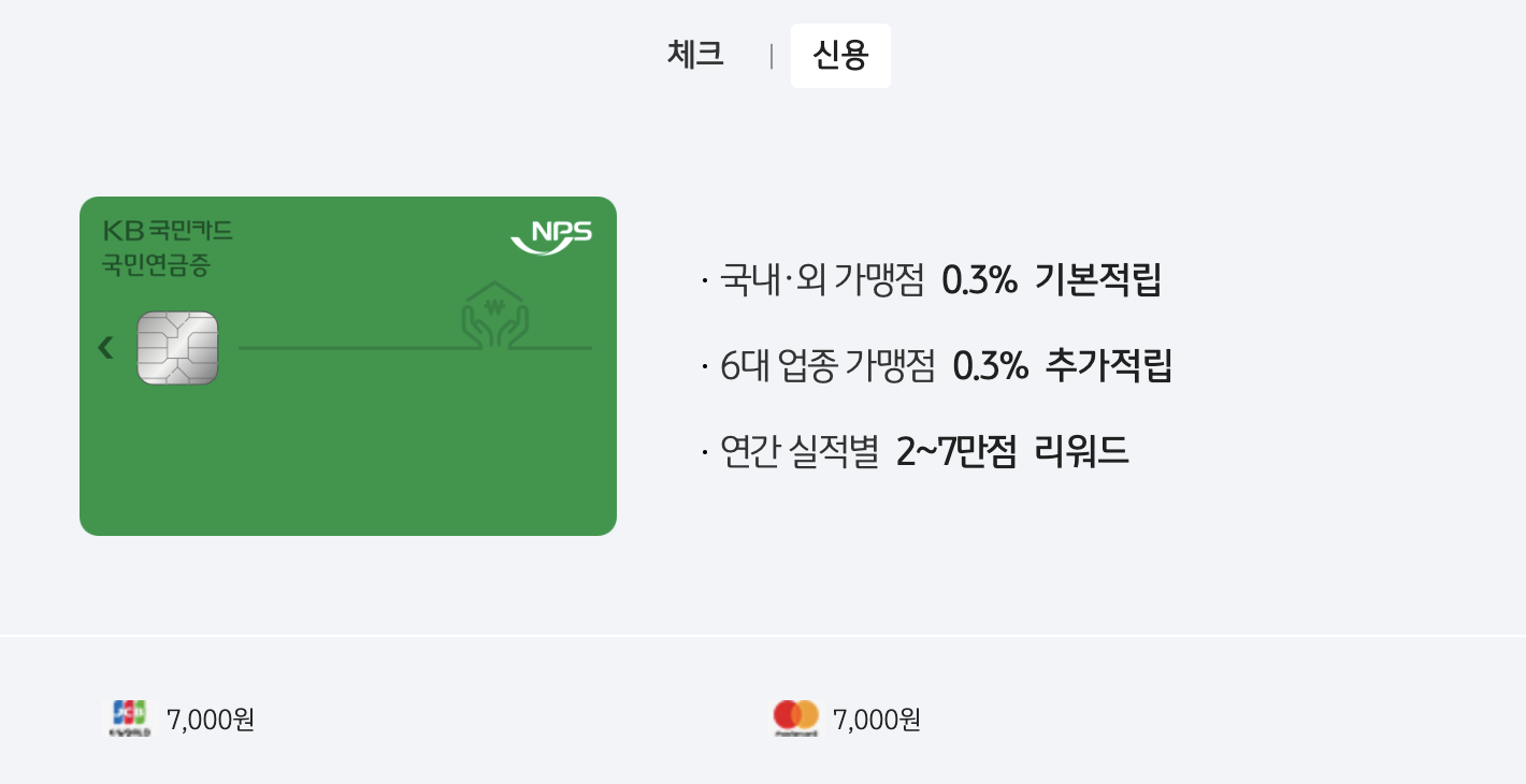 지금까지 국민연금증카드 발급 조건 및 카드 신청/혜택 알아봤습니다. 본인 생활 패턴에 맞는 혜택을 지닌 카드로 선택하시어 많은 혜택 받으시기 바랍니다.