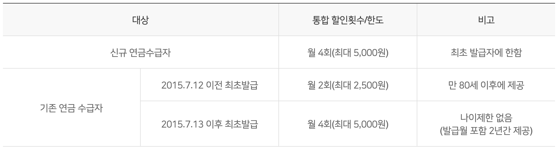 1회 이용금액 600원 ~ 1,250원인 버스 요금에 대해 매월 4회까지 제공