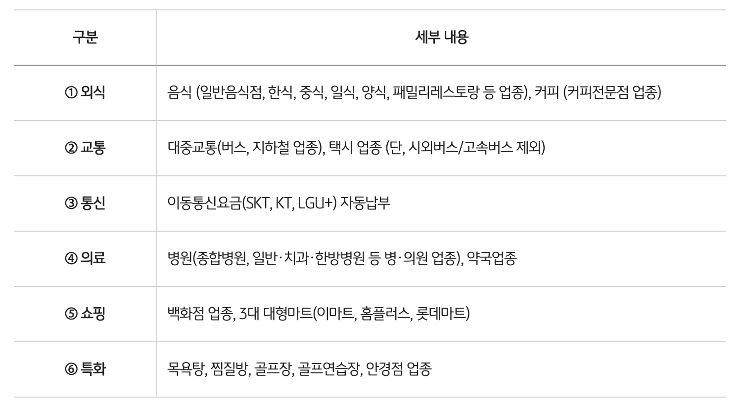 | 대형마트, 백화점, 하나로마트 청구할인 |