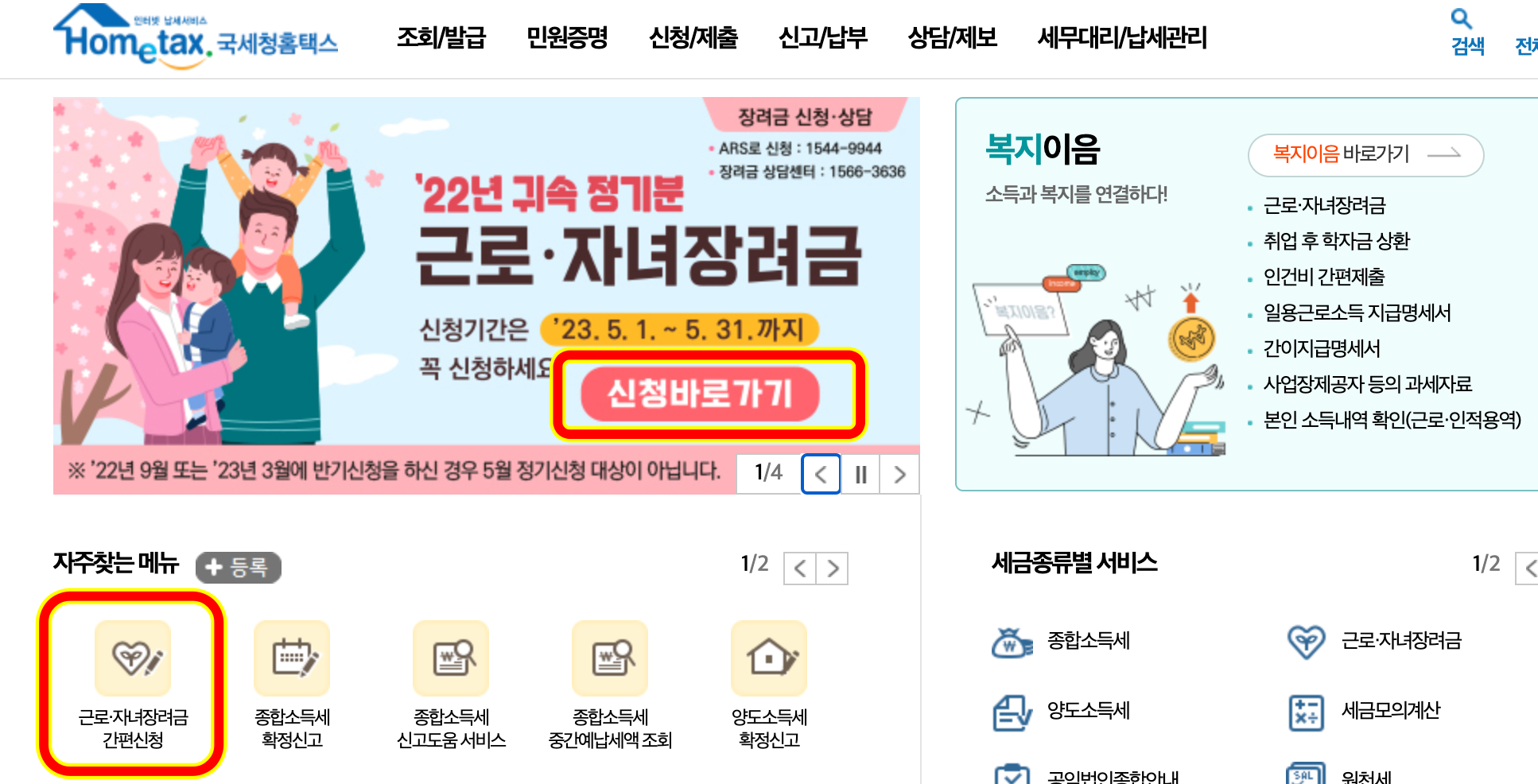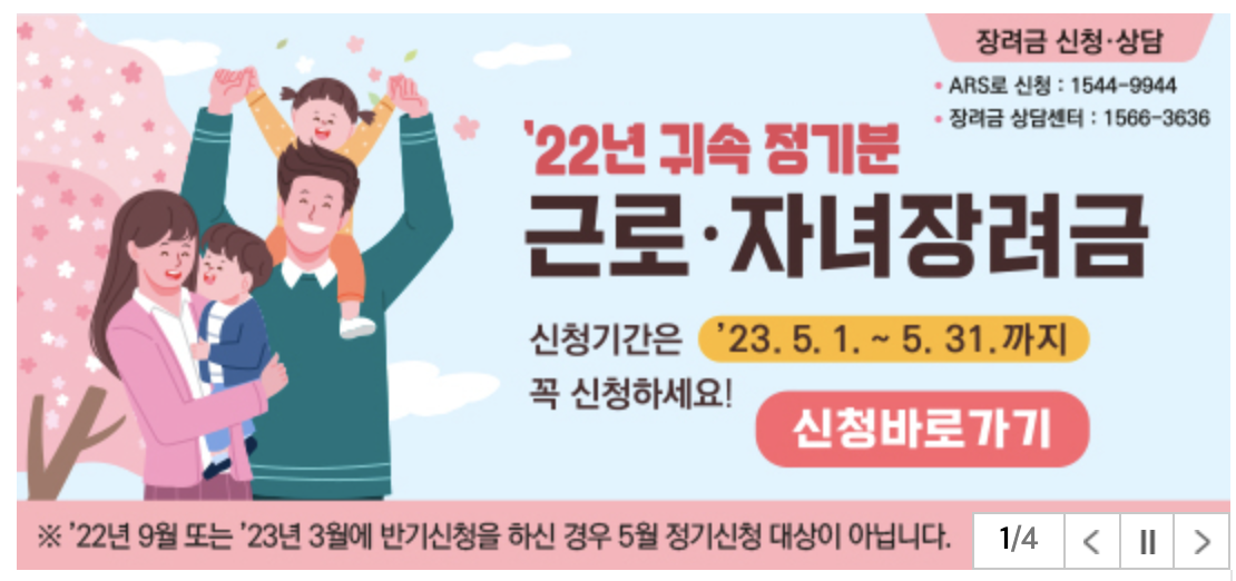 현재 근로장려금 정기신청기간입니다. 이 신청기간 이후에 기한 후 신청은 10% 감액으로 지급되오니 이번 정기신청 때 꼭 신청하시기 바랍니다.