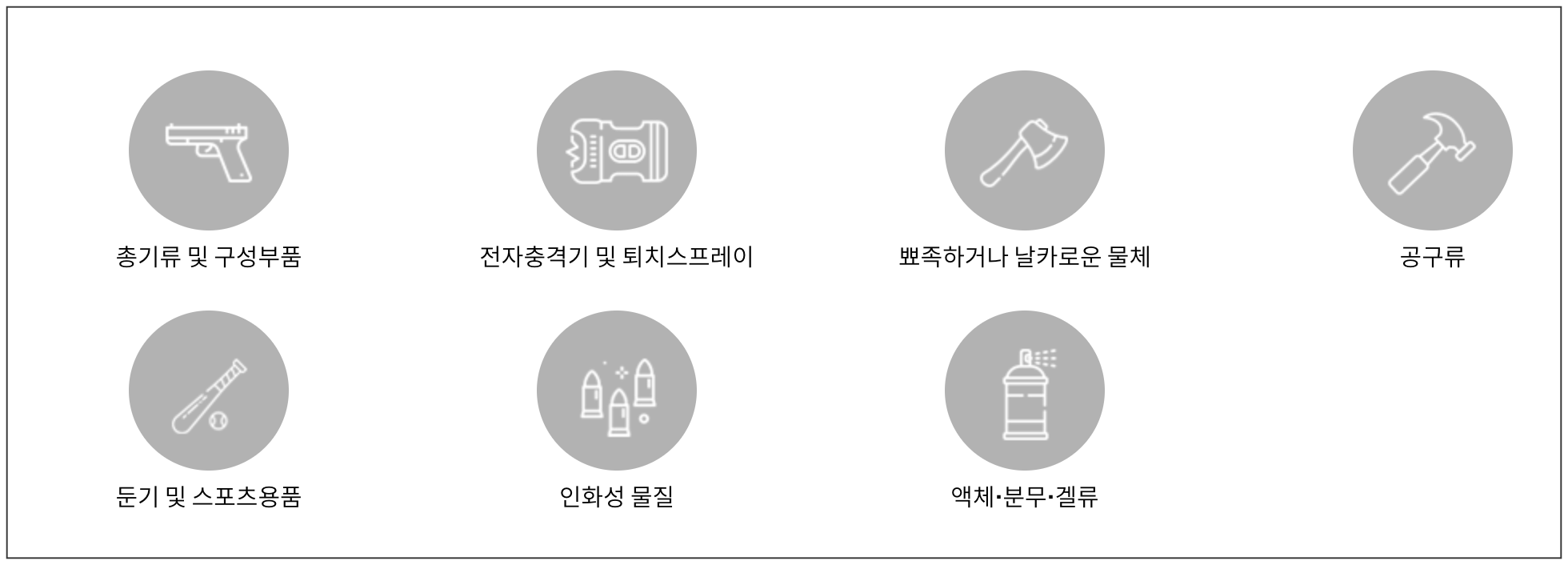 모형무기, 총포류, 도검류 등 위험물품은 당연히 반입이 안됩니다.