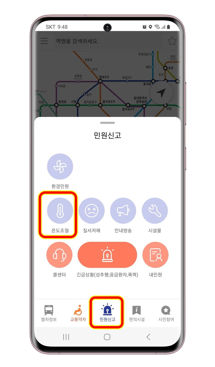 민원신고를 하고자 할 때는 [서울지하철공사 고객센터] 혹은 [또타지하철]앱을 이용하여 냉난방 민원 신고를 하면 됩니다.
