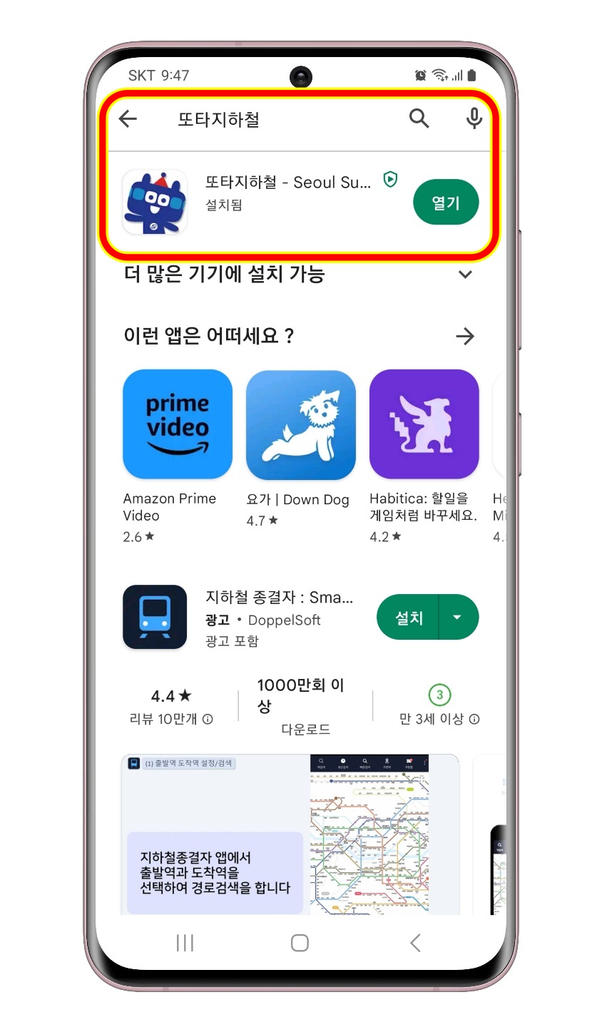 서울교통공사에서 운영하는 [또타지하철]앱을 통하여 민원 접수가 가능합니다. 우선 핸드폰에 앱을 설치하시기 바랍니다.