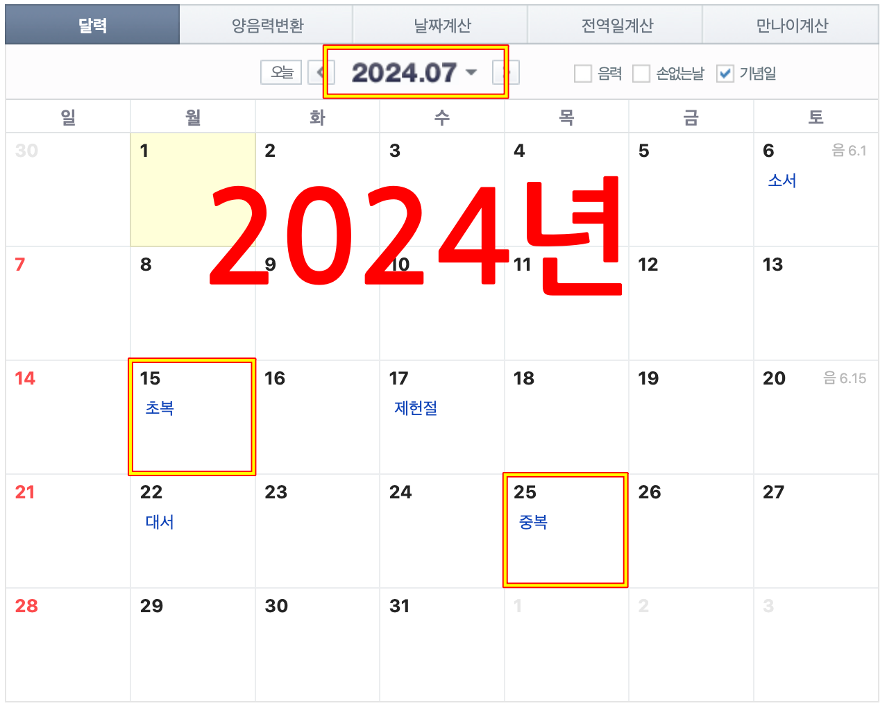 2024년 초복,중복,말복은?