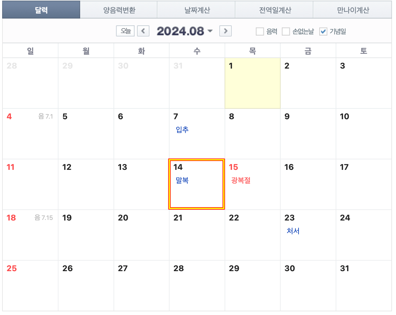 말복 : 8월 10일