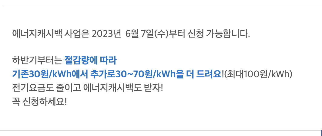 상반기 신청은 마감됐으며, 하반기 주택용 에너지 캐시백은 6월 7일부터 신청이 가능합니다.