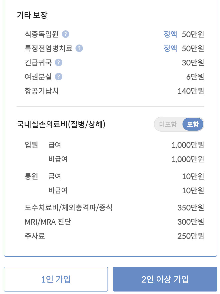 일주일 괌으로 여행가는 보험료를 계산해봤습니다. 든든플랜 / 안심플랜 두 가지로 보험료를 받아볼 수 있습니다.