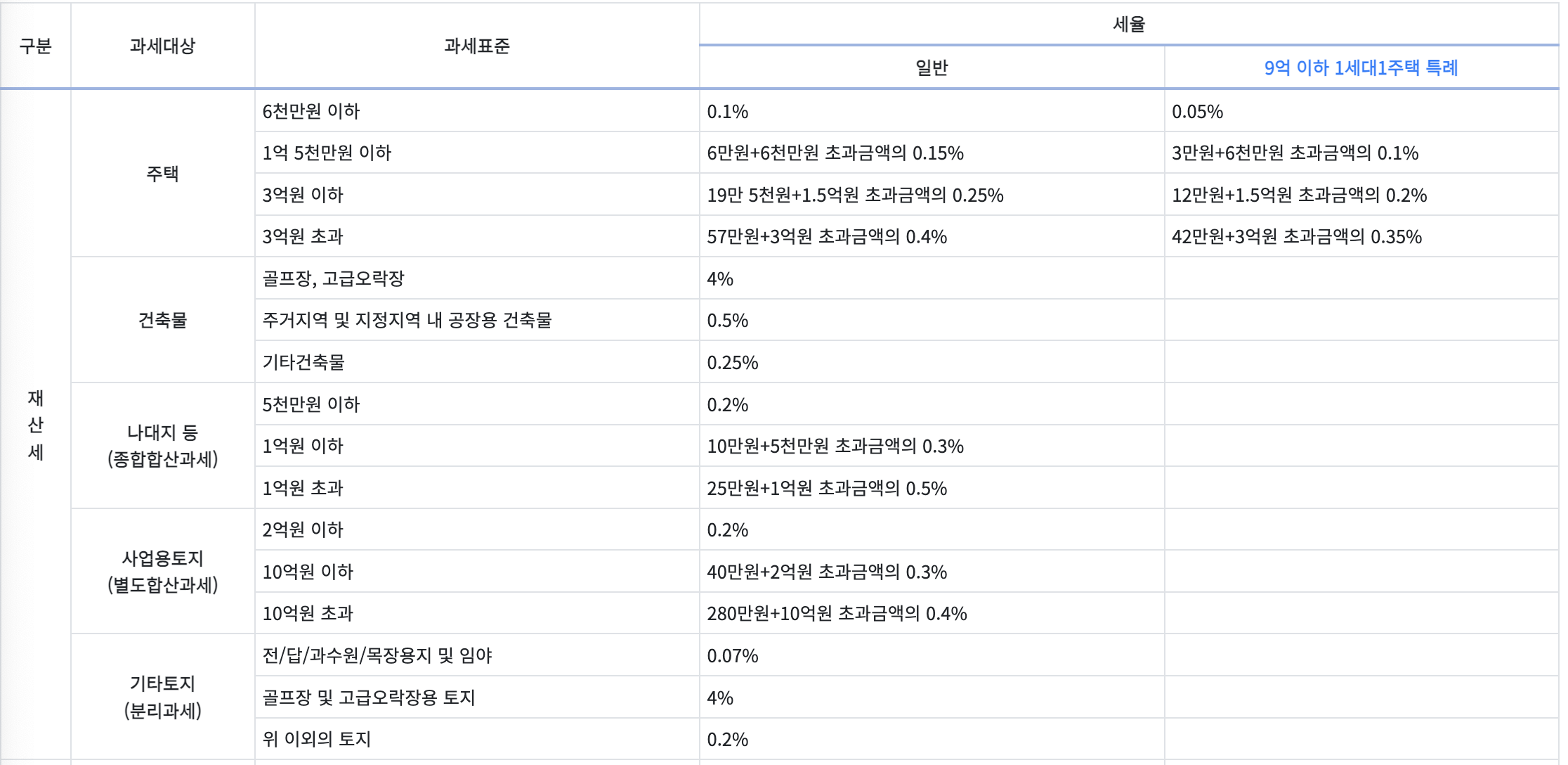 | 토지 / 건축물 / 주택 | 시가표준액 * 공정시장가액비율 |