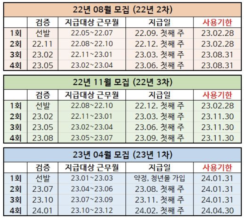 ※ 사용기한 및 포인트 잔액 확인 방법 : 청년몰 > 나의복지 > 포인트조회 > 지급내역