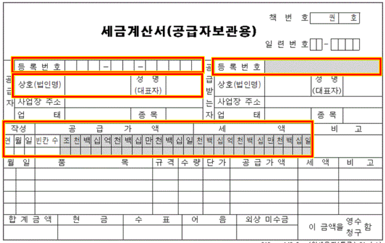 이 필요적 기재사항이 제대로 작성되지 않으면 증빙으로서 인정 받을 수 없게됩니다. 또한 가산세를 추가로 납부할 수도 있으니 정보가 입력되어 있는지 꼭 확인하시기 바랍니다.