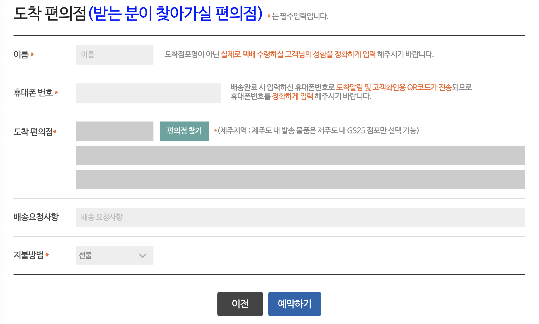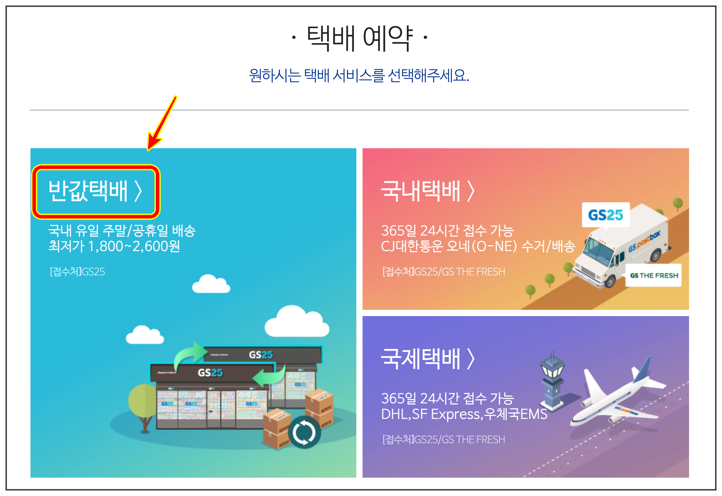 이렇게 홈페이지를 통하여 반값택배 예약하기를 마쳤다면 GS25 편의점에 방문하여 마무리를 해야합니다.