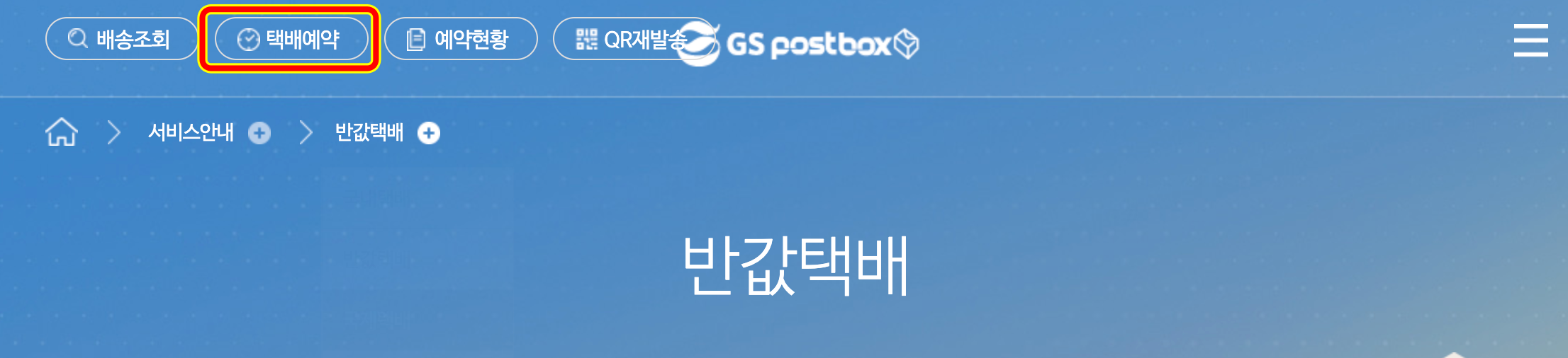 step 1. 반값택배 홈페이지 상단 [택배예약]을 선택해 주세요.