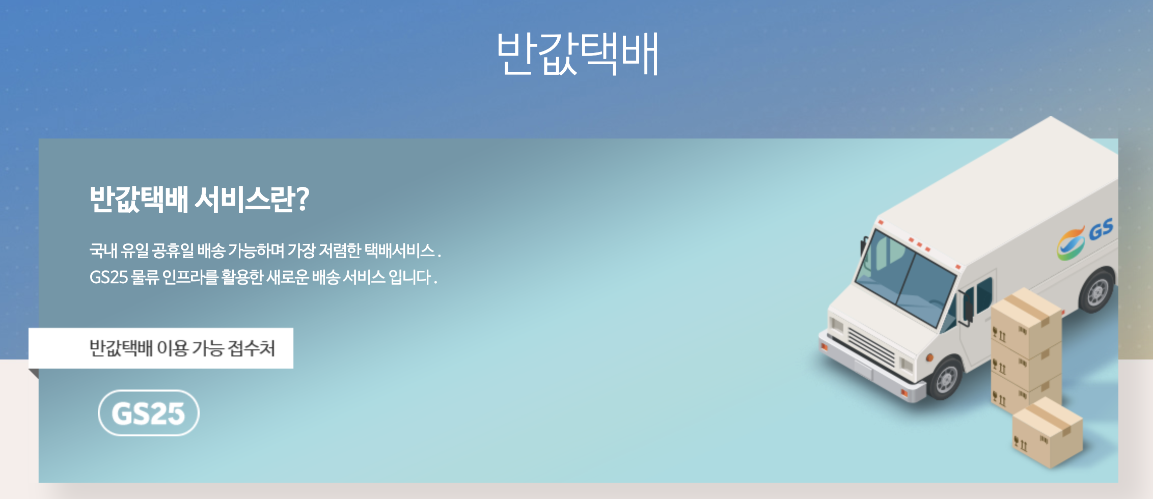 반값택배는 국내 유일 공휴일 배송이 가능하며 가장 저렴한 택배 서비스입니다. GS25 물류 인프라를 활용한 새로운 배송 서비스입니다.