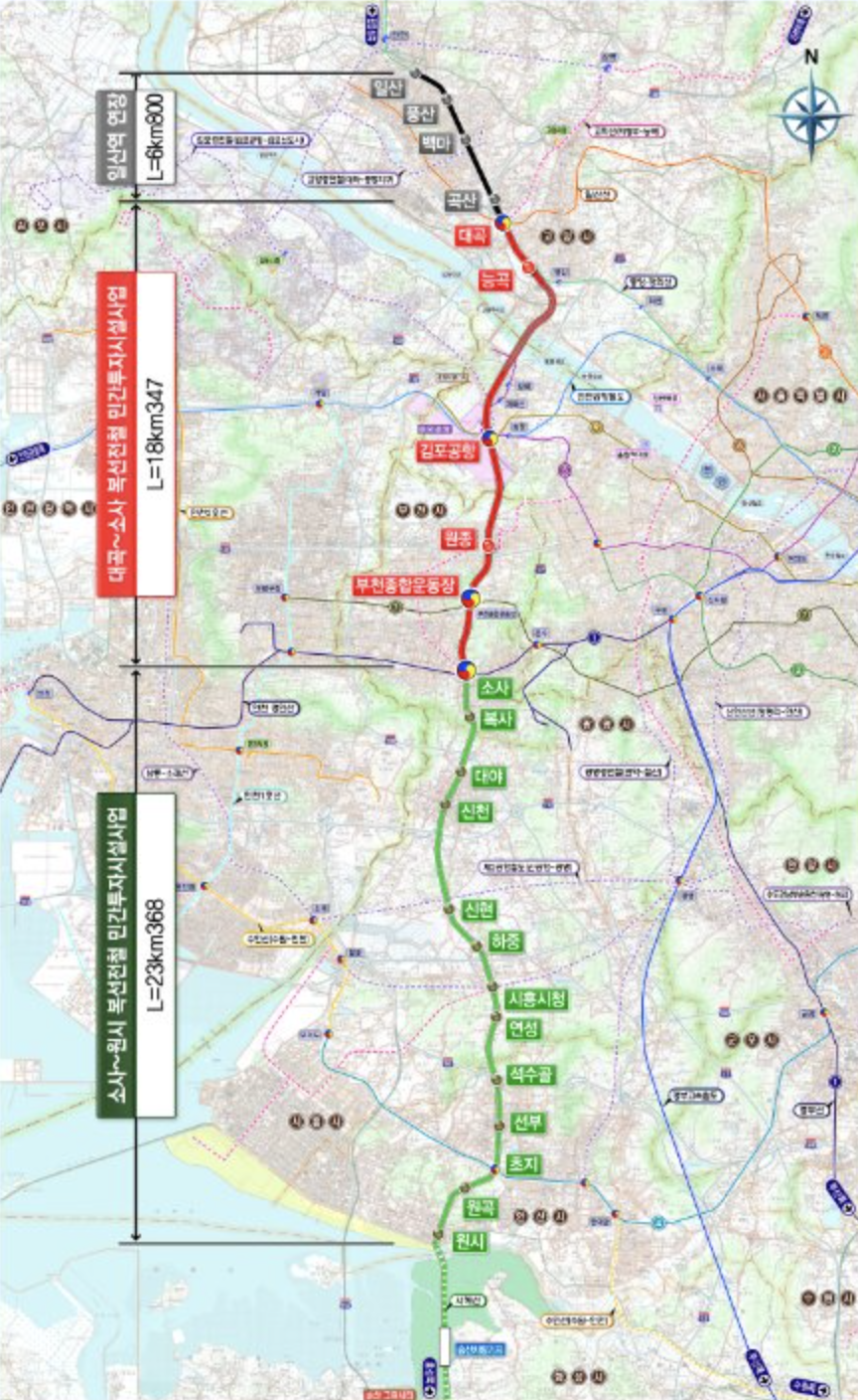 김포공항에서 5호선과 7호선, 공항철도 등으로 환승 또한 가능하며, 마곡.여의도.강남 등의 주요 업무지구까지의 이동시간이 단축되게 됩니다. 또한 부천종합운동장역에서 7호선, 소사역에서 1호선으로 환승도 가능해짐으로서 가산디지털단지나 부천 및 인천 등의 접근 역시 편리해집니다.