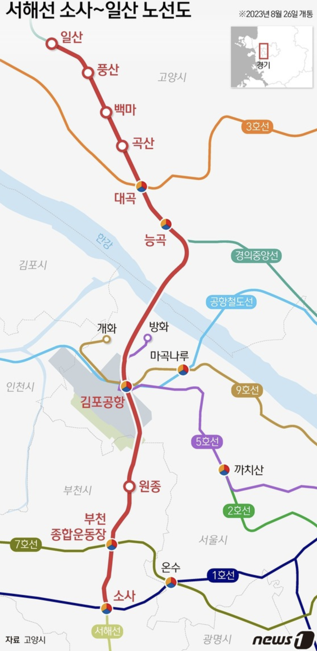 지난 7월 1일 서해선의 도곡~소사 구간이 개통했습니다. 그리고 8월 26일 고양시 일산역까지 연장되어 개통된다는 소식입니다.