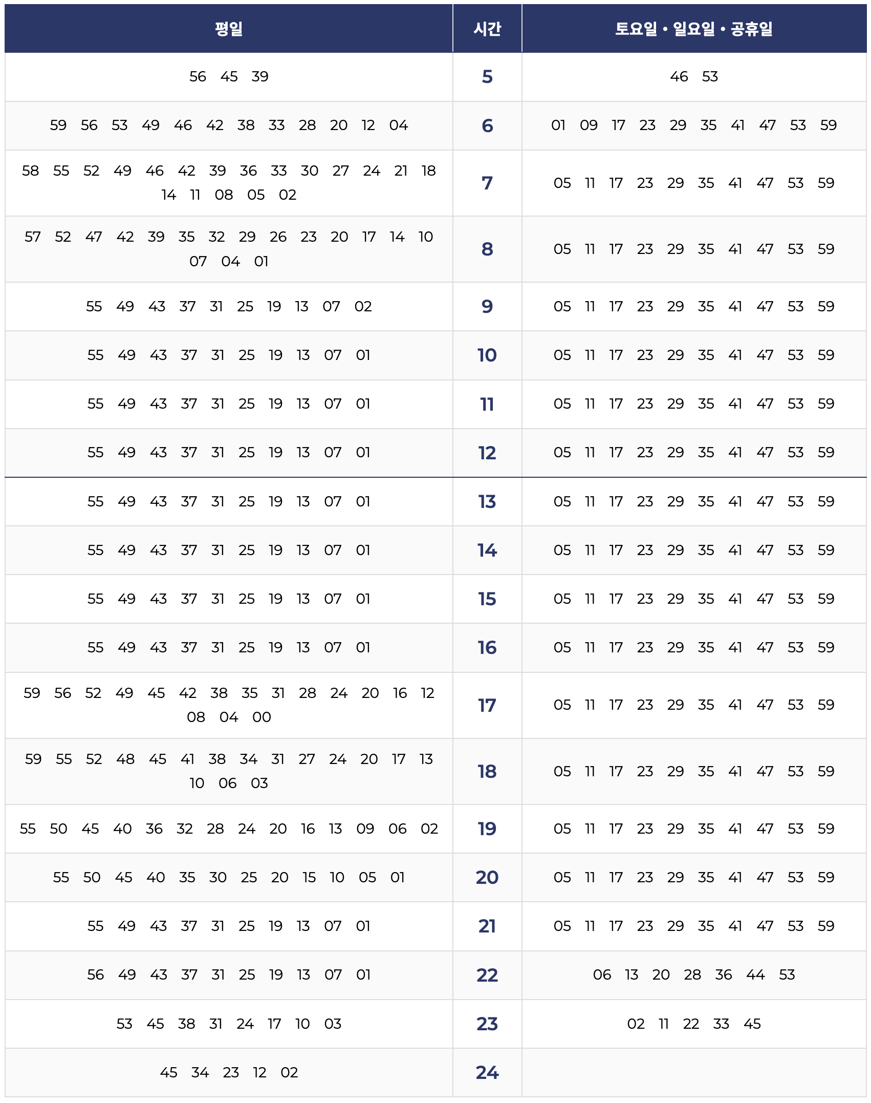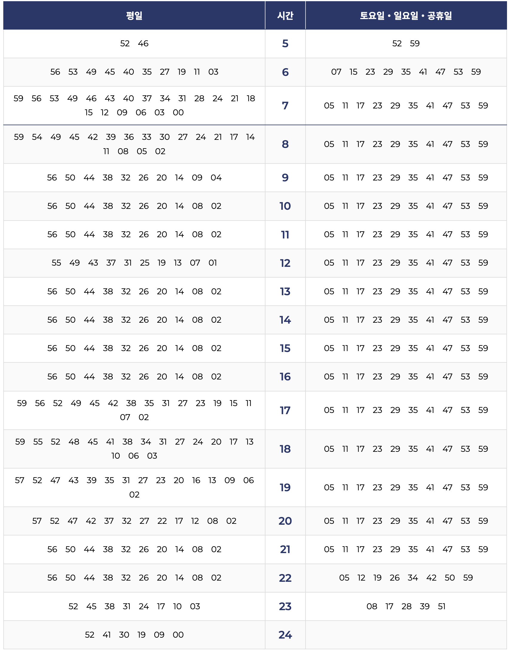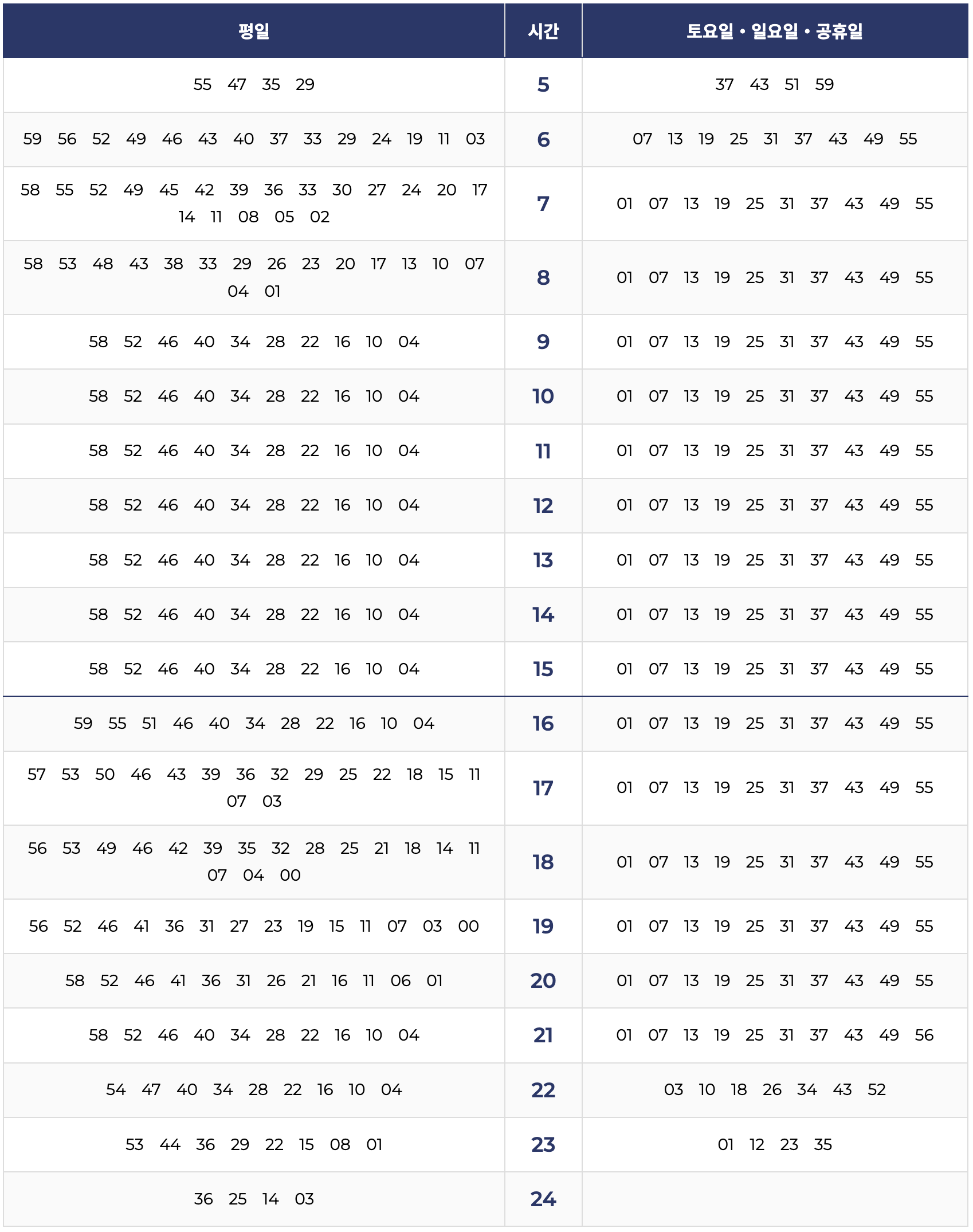 5. 운양역 → 김포공항 방면 시간표
