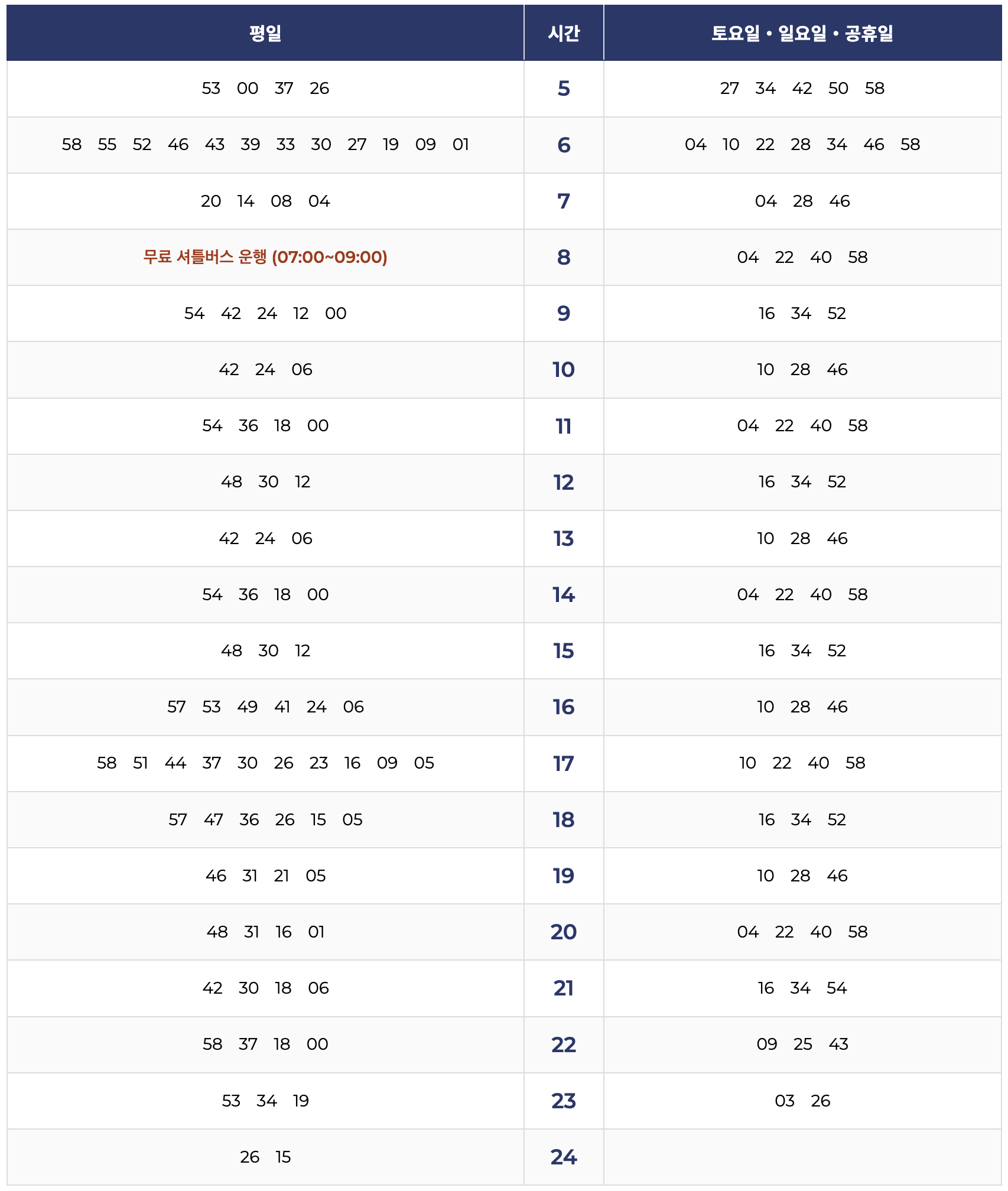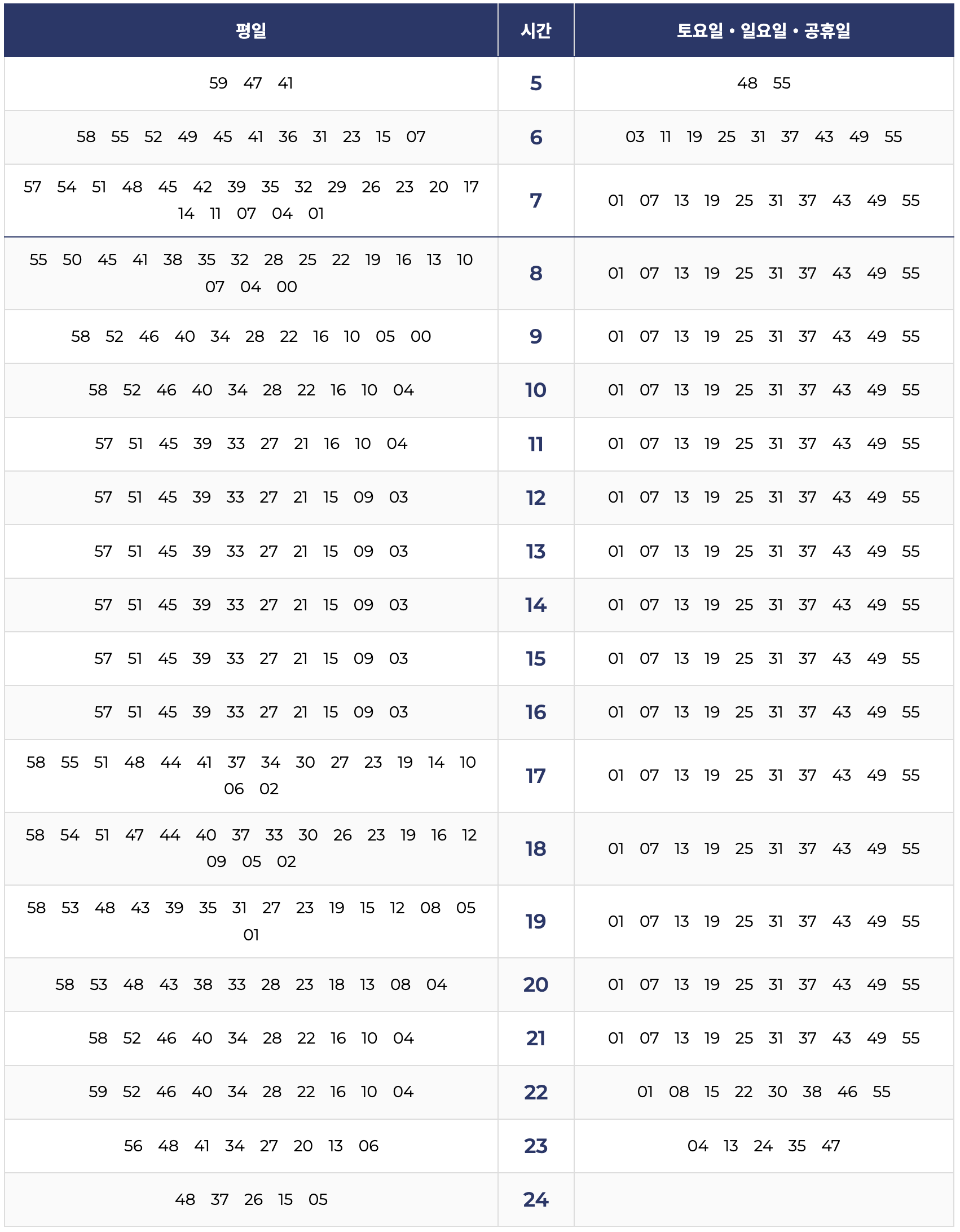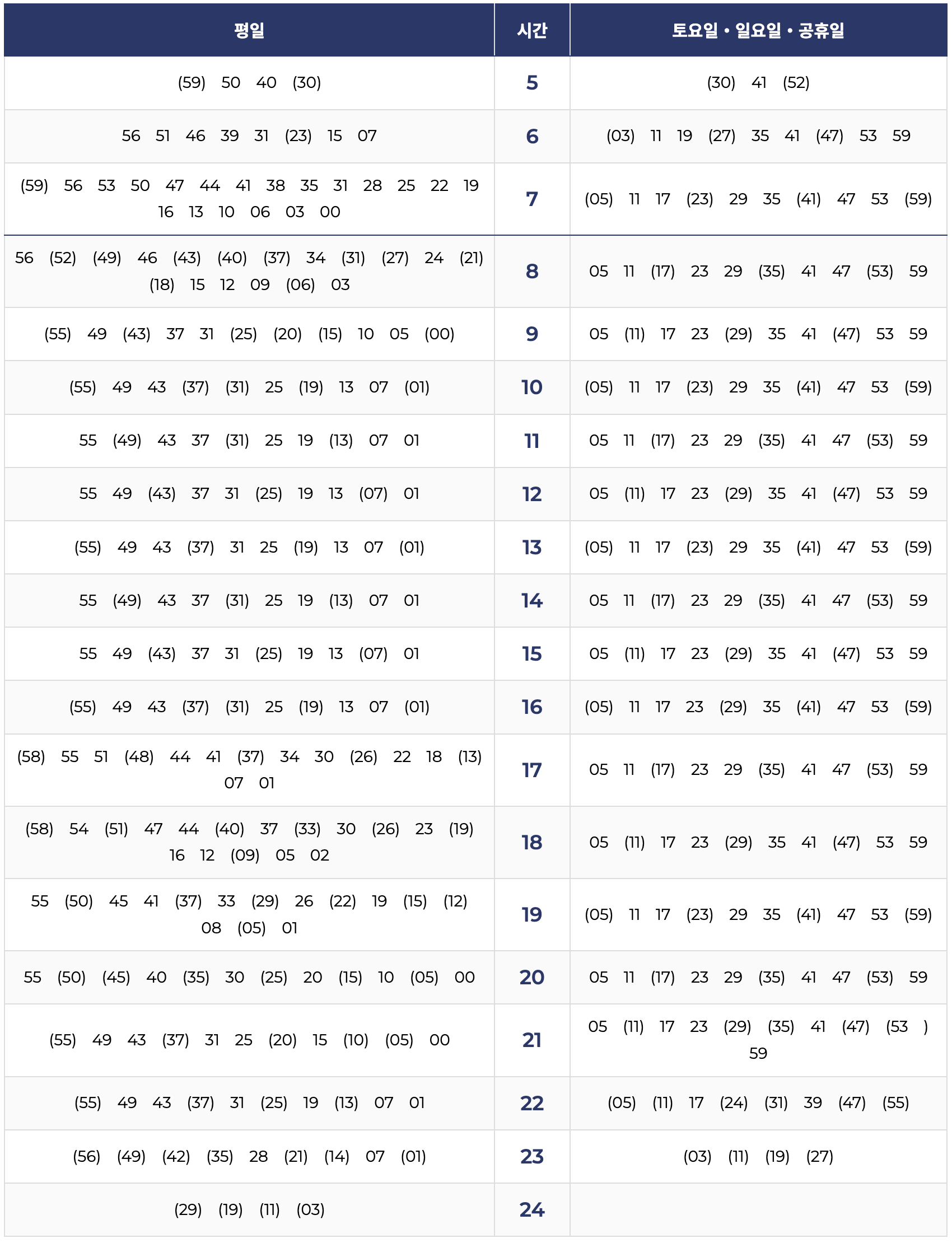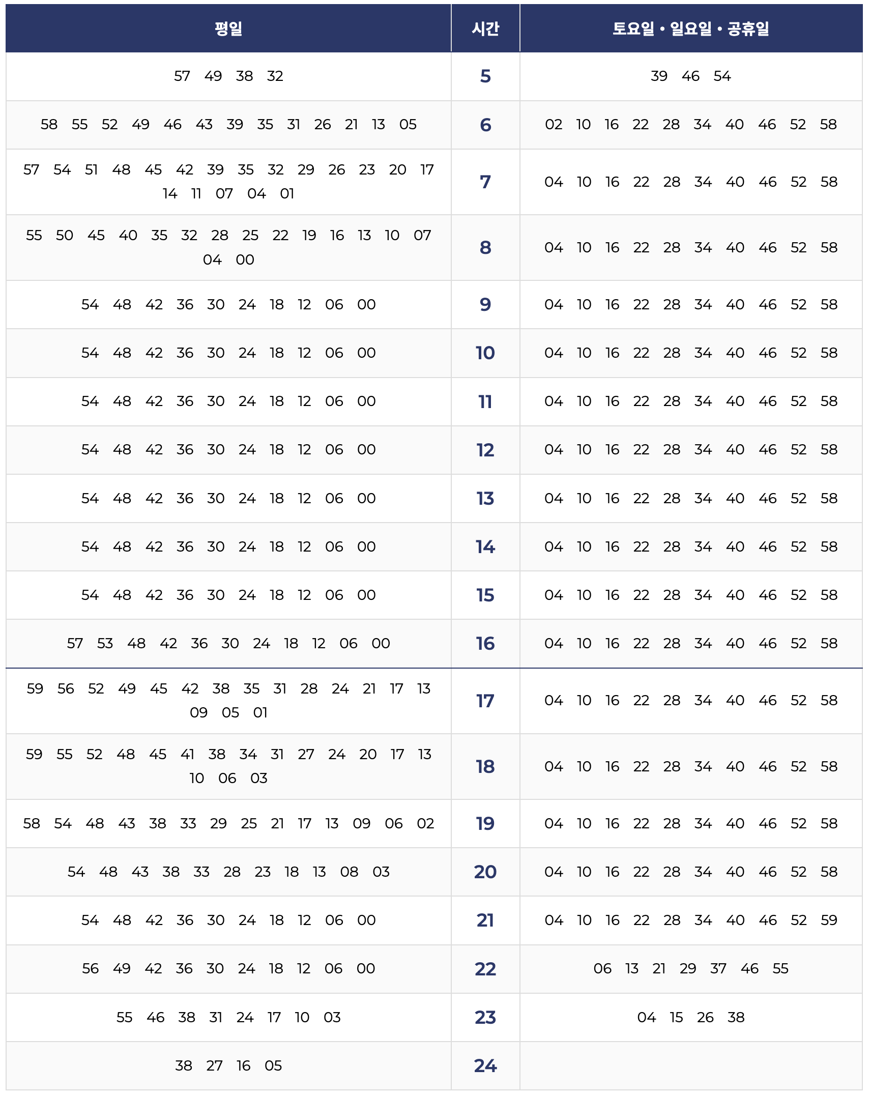 평일 아침 7시부터 9시까지, 약 5분 배차간격으로 무임셔틀버스가 운행되오니 참고하시기 바랍니다.