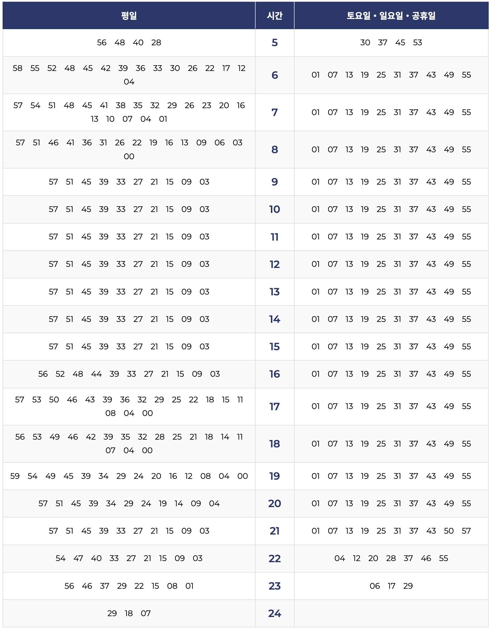 6. 걸포북변역 → 김포공항 방면 시간표