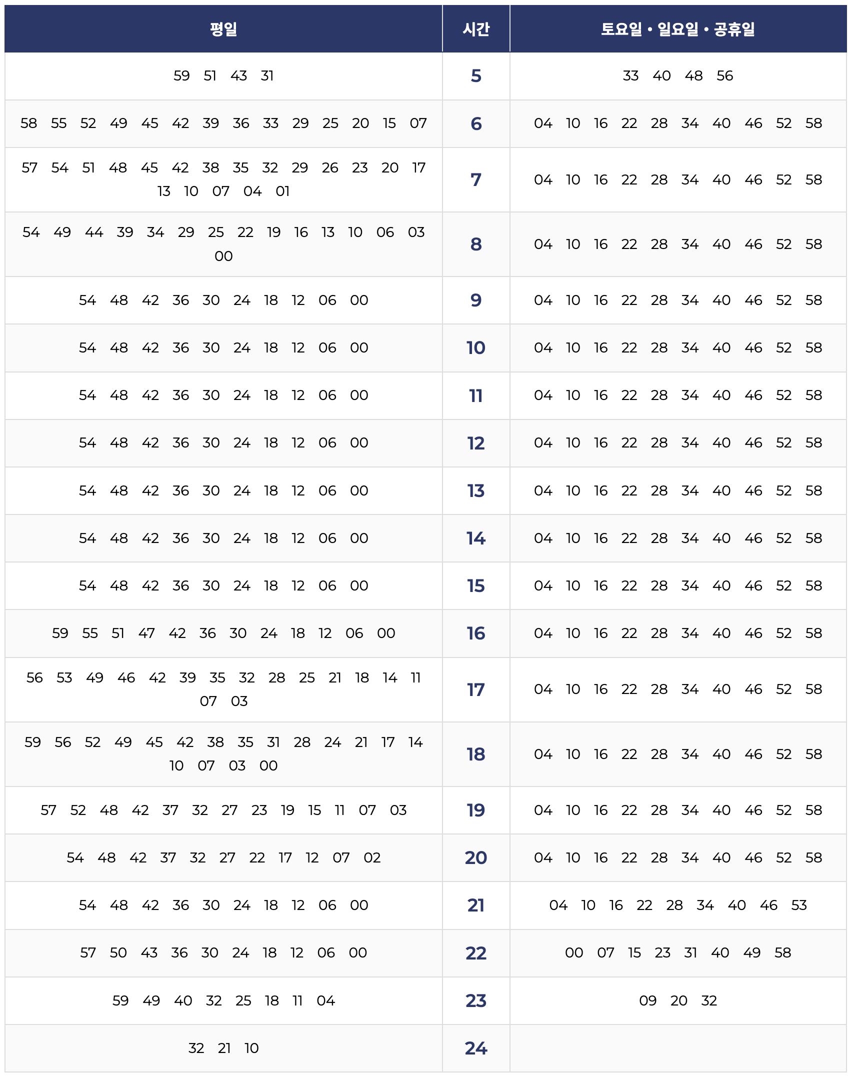 10. 김포공항역 → 구래(양촌) 방면 시간표