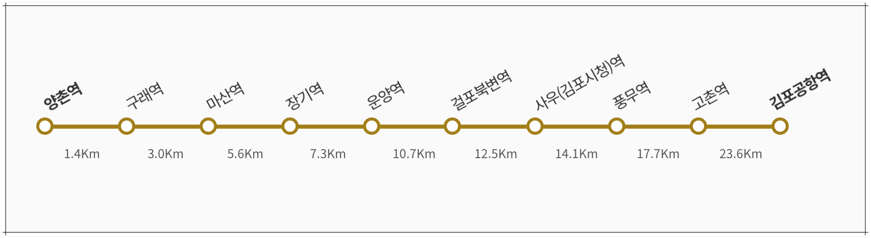 김포골드라인은 양촌, 구래, 마산, 장기, 운양, 걸포북변, 사우(김포시청), 풍무, 고촌, 김포공항까지로 총 10개 역으로 이루어진 노선입니다. 하지만 출근시간대 혼잡률 개선을 위하여 2024년 11월까지 평일 7시~9시까지는 양촌역-구래역 구간은 열차가 미운행됩니다. 하지만 이 시간동안 무임셔틀버스를 운행하고 있으니 참고하시기 바랍니다.