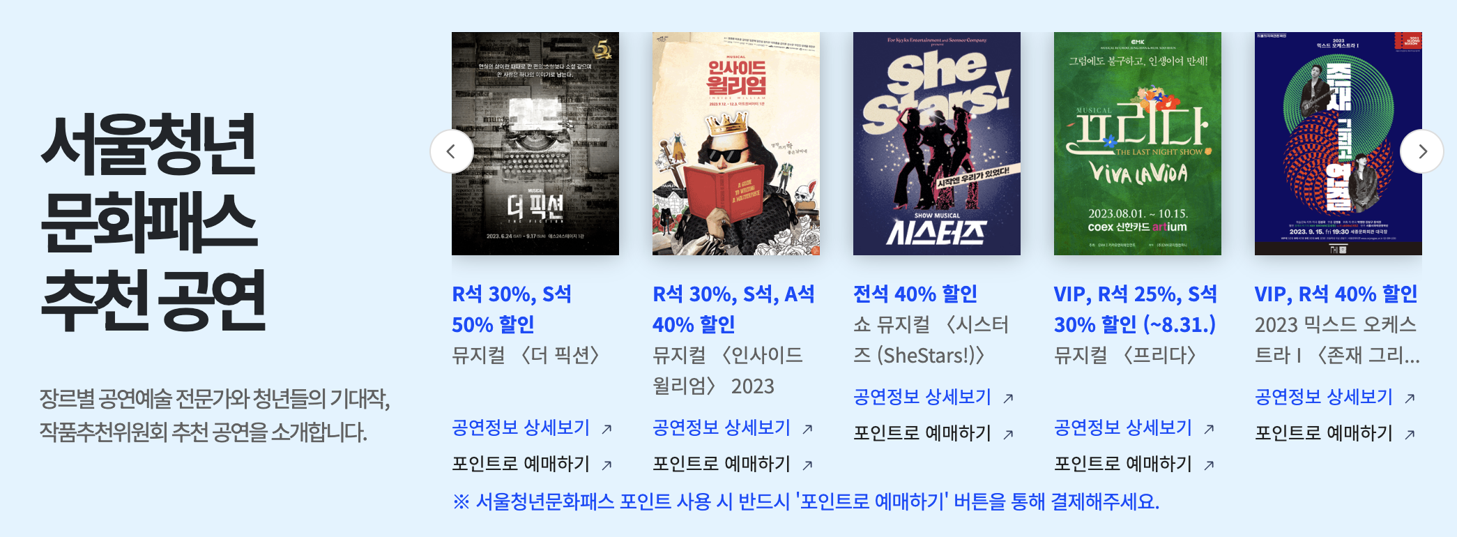 ▷ 청년문화패스 전용 홈페이지에서 제공하는 공연에 한해 예매가 가능합니다.