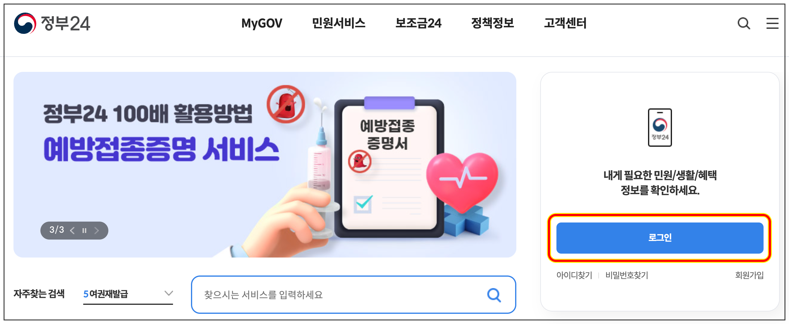 Step 1. 정부24 홈페이지에 접속해주세요.