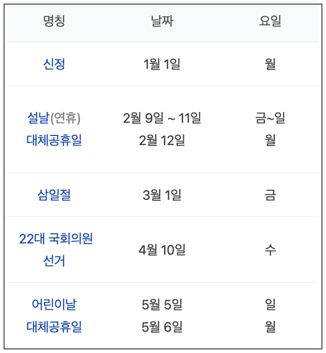 더불어 2024년 공휴일 첨부하겠습니다. 참고하시어 알차고 즐거운 공휴일 보내시기 바랍니다. 감사합니다.