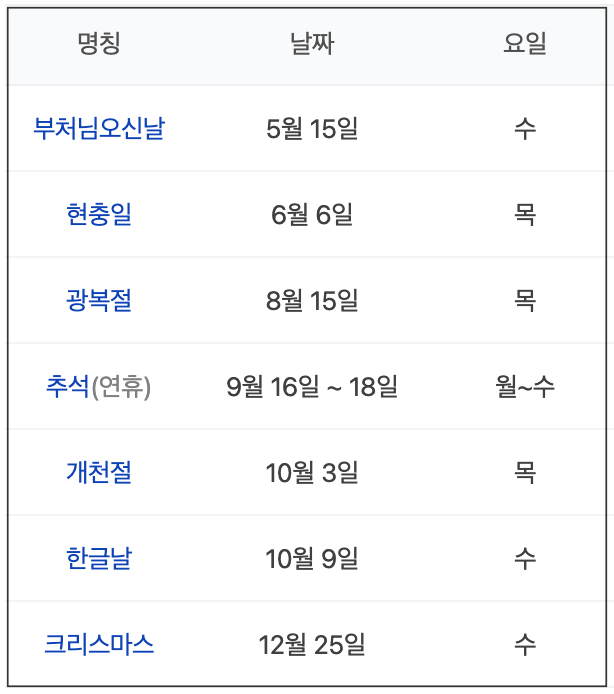 2024년 공휴일
