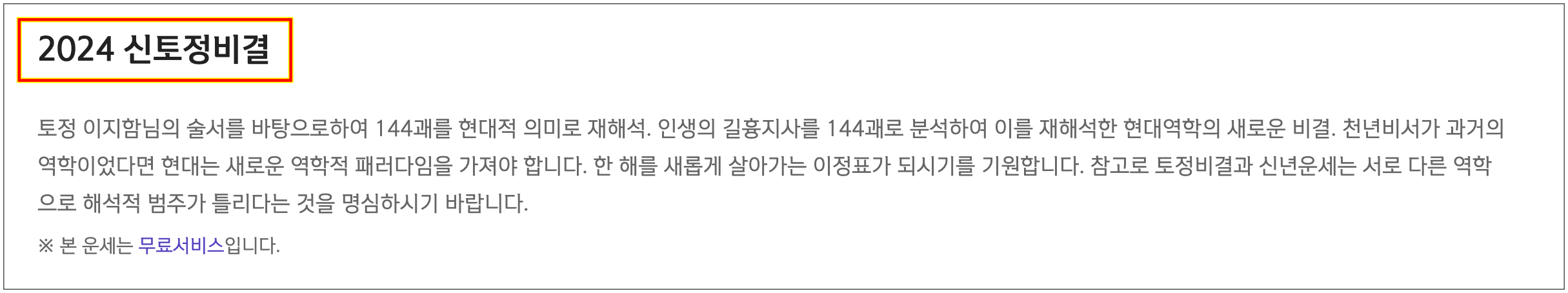 2024년 토정비결, 무료운세