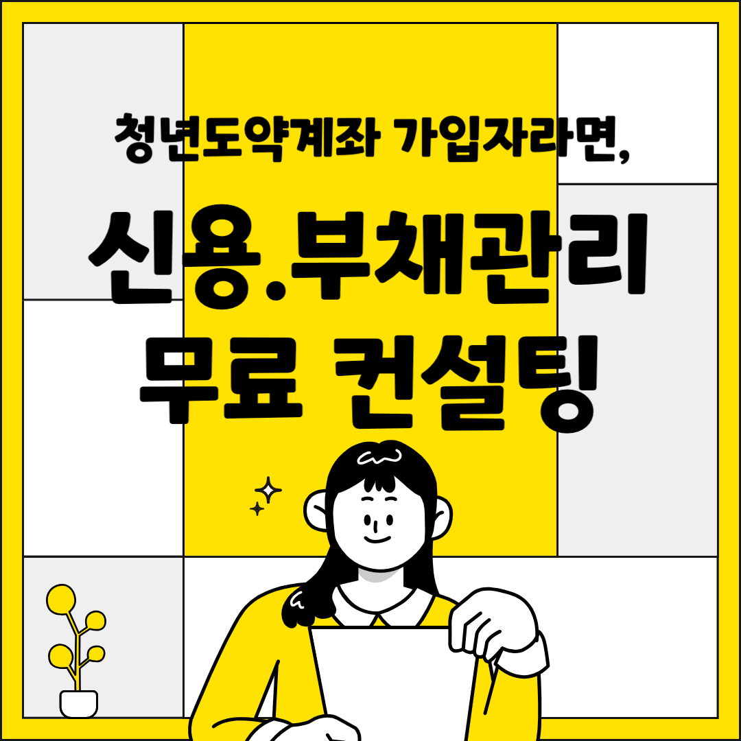 청년도약계좌 가입자라면 누구나 1:1 맞춤 무료 컨설팅 서비스가 가능한거 알고계신가요? 금융전문컨설턴트가 월 1회 신용과 부채상태를 컨설팅해드립니다. 무료로 상담받을 수 있는 이 기회 꼭 챙기시기 바랍니다.