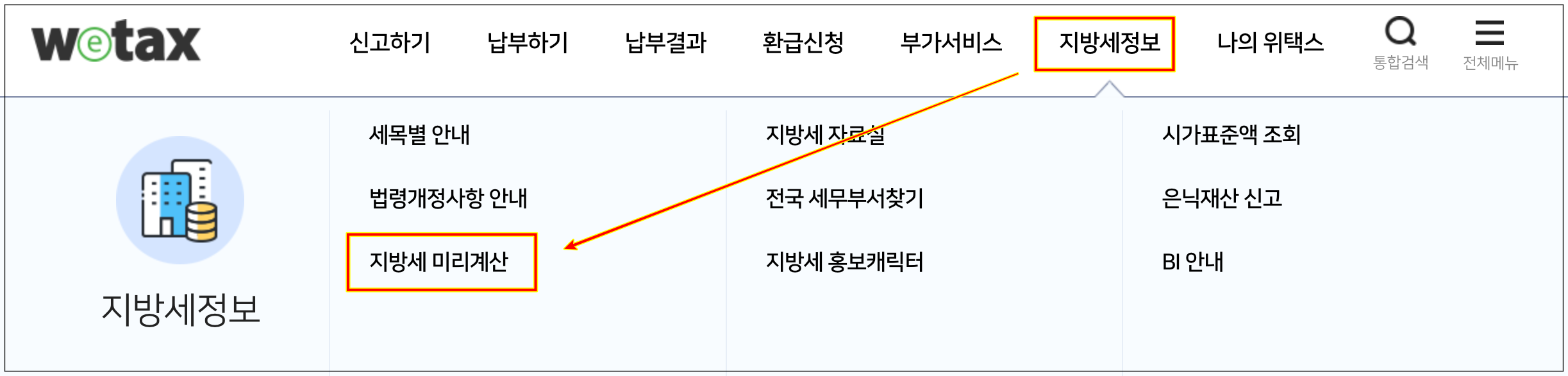 [지방세정보] > [지방세 미리계산] > [자동차세(소유)]