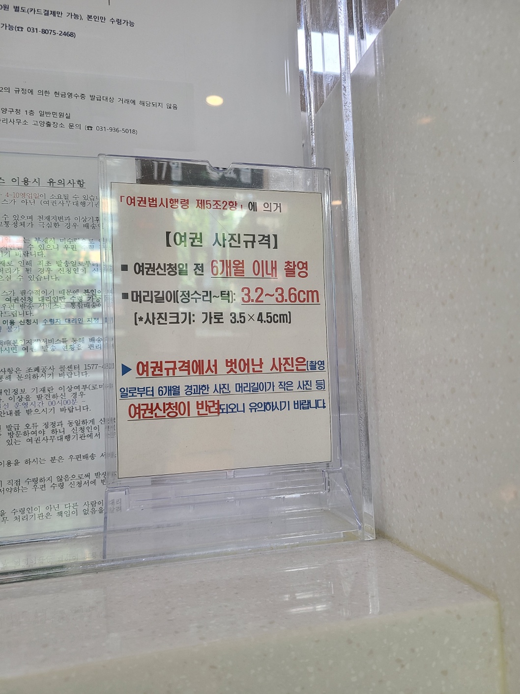 - 6개월 이내 촬영한 여권용 사진 1매(3.5cm × 4.5cm규격)