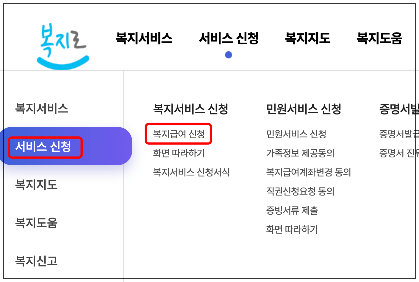 복지로 홈페이지에 접속 후, 서비스 신청 → 복지급여 신청 메뉴에서 신청하시면 됩니다.