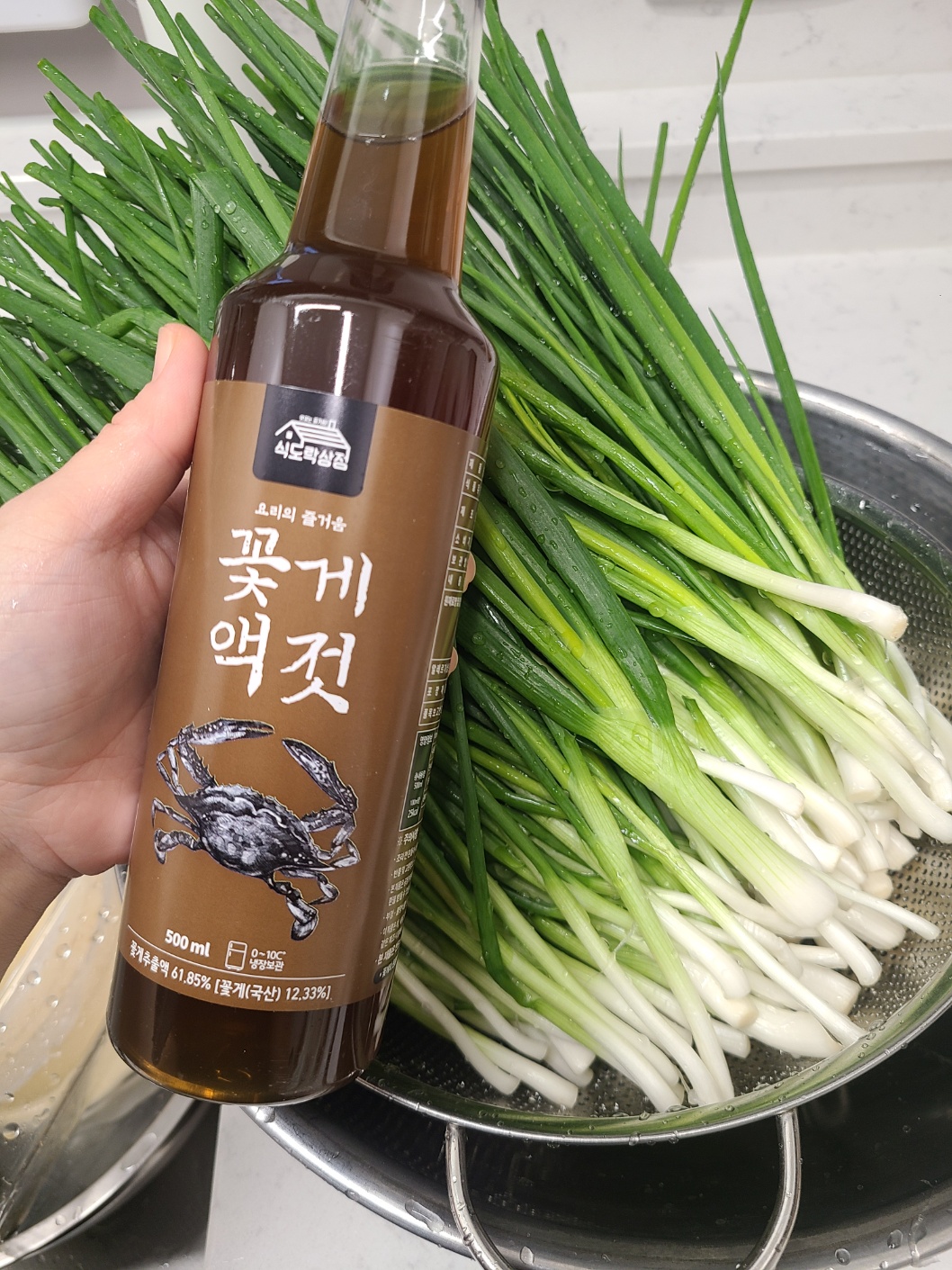이영자 파김치의 키포인트가 이 꽃게 액젓이 아닐까 싶습니다. 꽃게액젓을 넣으니 뭔가 감칠맛이 대폭 증가했달까요. 많이 짜지도 않고 좋았습니다. 이 꽃게액젓은 사두면 국, 탕, 찌개끓일 때 이외에도 조림용, 무침용으로도 사용가능하니 사둬도 다양하게 활용할 수 있어 다소 높은 금액임에도 불구하고 과감히 투자했습니다. 물론, 일반 까나리 액젓이나 멸치액젓으로도 대체 가능합니다.