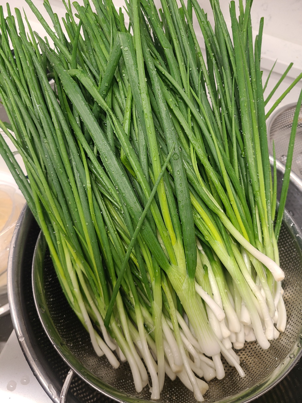 뿌리를 자르고 겉껍질을 벗기는 손질을 해줘야 합니다. 저는 시장에서 손질된 쪽파로 1단 샀습니다! 여기에서 손질하는 시간이 대폭 줄어듭니다. 하지만, 가격은 그만큼 올라갑니다. ;;;;