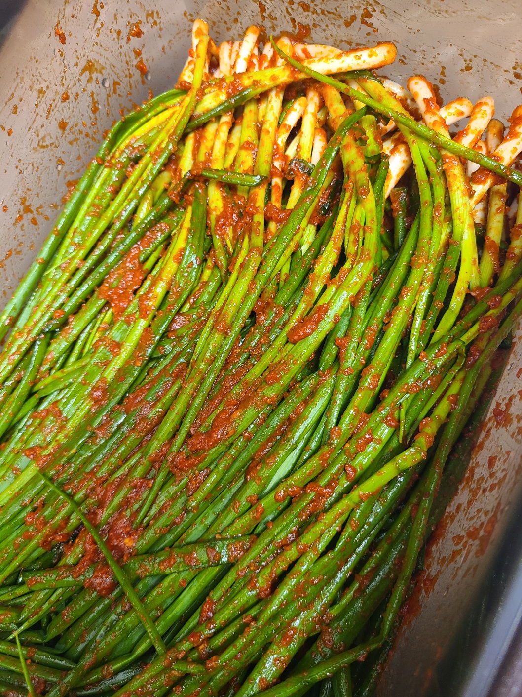 덜 익어도 아삭한 식감이 좋은 맛있는 파김치!