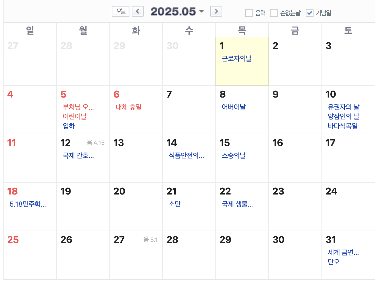 5월은 행사가 많은 달이죠? 25년 5월은 5월 5일이 어린이날과 석가탄신일입니다. 따라서 5월 6일 화요일이 대체 휴일로 지정되었습니다.