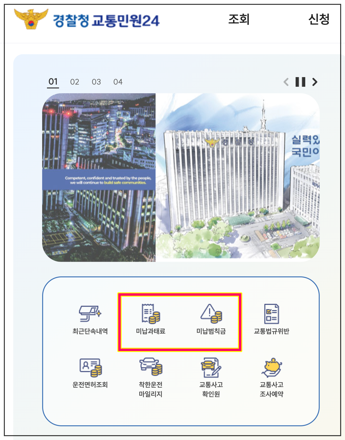 경찰청교통민원24(이파인) 홈페이지에서 납부