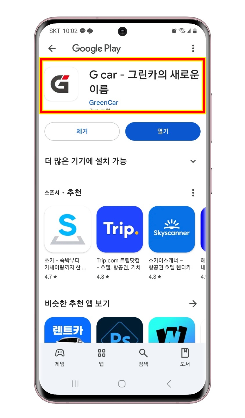 G카 (그린카)는 앱 설치가 필요합니다. 우선 Play스토어에서 [G카]를 검색하여 설치하여 주시기 바랍니다.