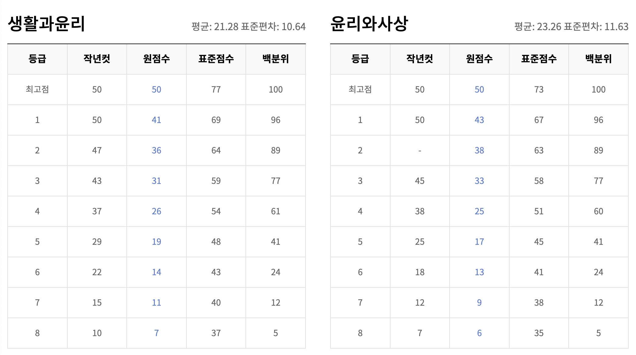 | 과목 | 1등급 예상 등급컷 |