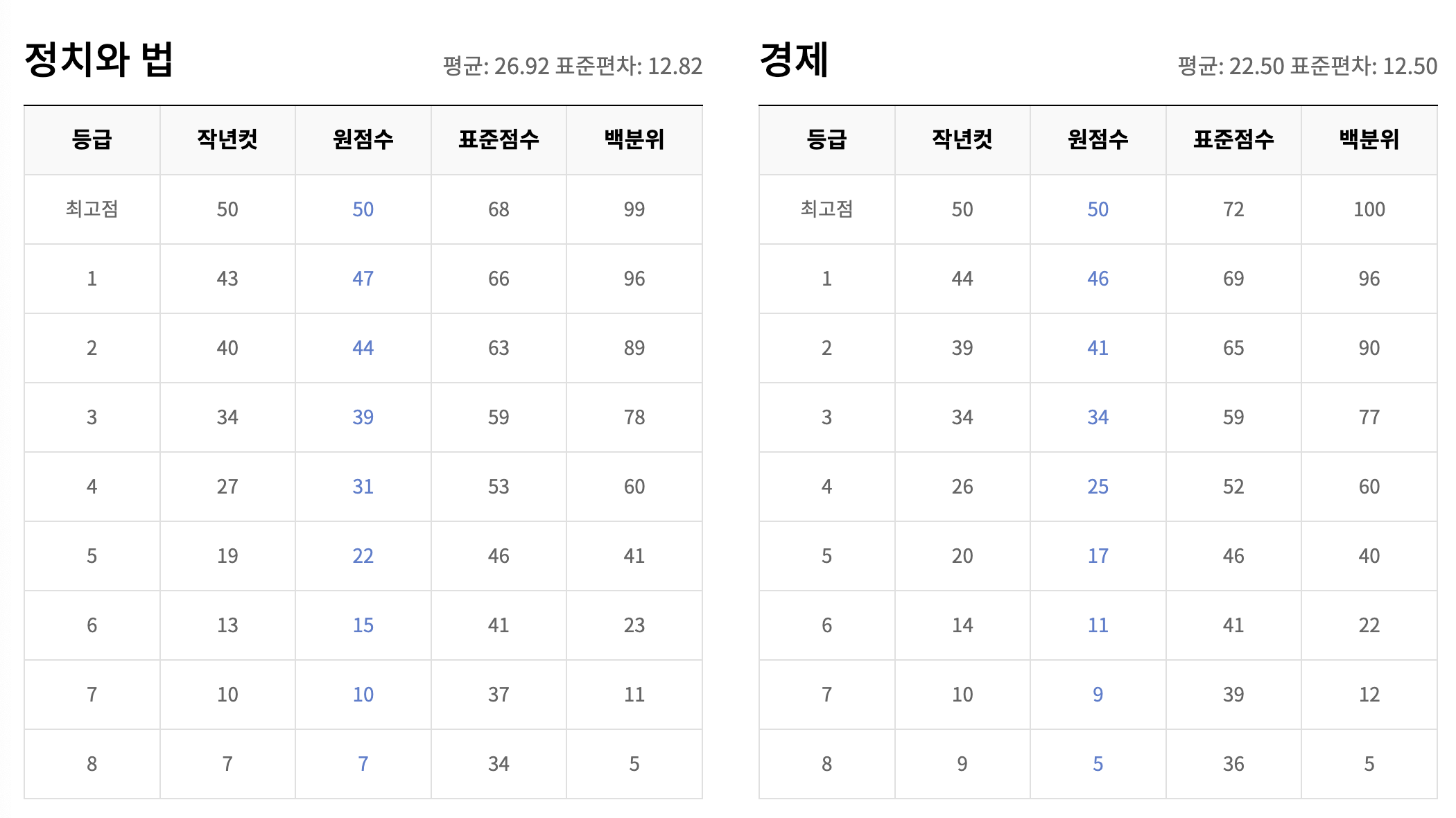 | 국어 | 130~131점 |