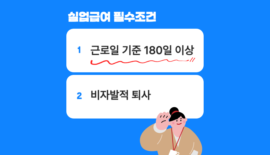 고용보험 가입기간이 최소 180일이상 이어야 합니다. 이 가입 기간은 근무 형태와 상관없이 연속적으로 근로한 일수를 기준으로 합니다.